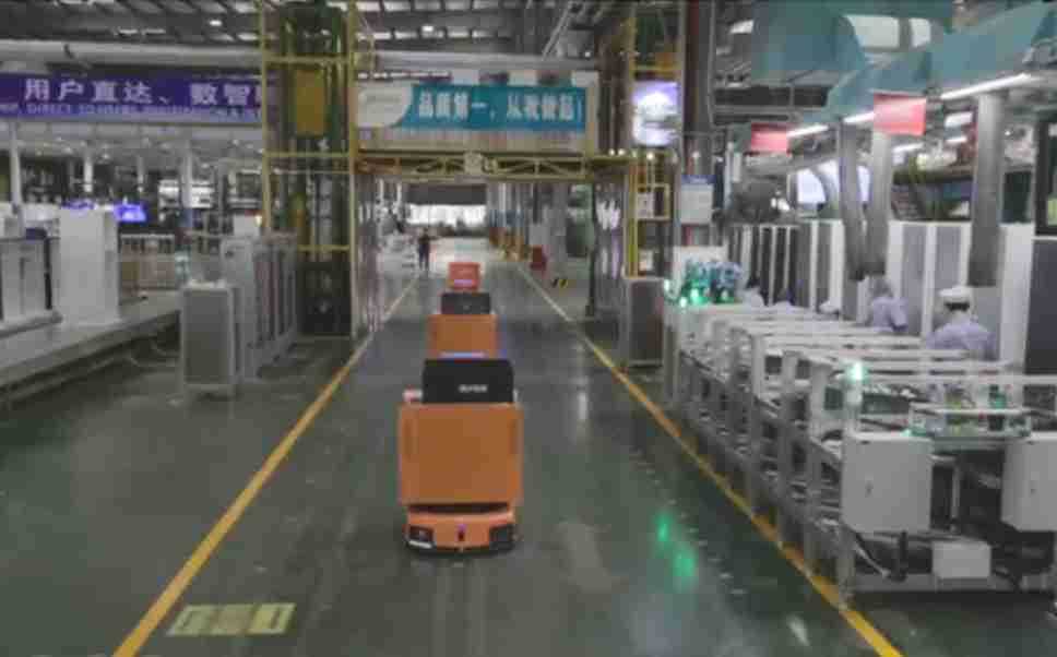 为车载冰箱物流配送打造的智能解决方案,,包含产中物流通过潜伏举升AMR搬运至线边,,,产后成品物流智能仓储,,,流程包含产中物流智能齐套入库,,线边安灯叫料AMR智能配送至线边,,,成品入库、、出库,,,通过无人堆高车机器人,,,,智能仓储管理替代人工作业管理,,,,实现更高存储、、、更高效率、、更具柔性化的解决方案。。。。